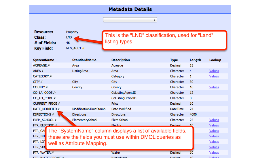 If you are bewildered by XPath semantics you’ll learn that DMQL is even stranger. DMQL is a query language required by most RETS providers. The first step you should take before writing a DMQL query is take a look at the fields used by your MLS provider, you may do so at http://rets.usabilitydynamics.com, provided you have login credentials. Once you have logged into your RETS provider navigate to a Property Classification of your choice.